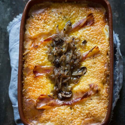 - Zet de ovenschaal voor een minuut of 25 in de oven en draai de oven de laatste vijf minuten naar grill stand voor een lekker krokante kaaskorst.